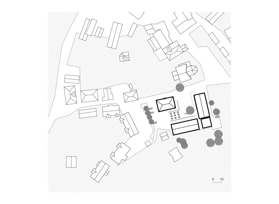 Die Belebung solcher Ortskerne ist also ein dringliches landläufiges Thema, das mit Weitblick geplant werden muss, um das baukulturell vererbte Gefüge unserer ländlichen Siedlungsräume zu pflegen und zu erhalten. Die Aufgabenstellung sieht vor, den Ort im Umfeld der Kirche und des Pfarrhofes mit einer Arztpraxis und generationenübergreifenden Wohnfunktionen aufzuwerten.